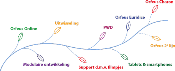Via Orfeus Online wordt de software aangeboden, beheerd en geactualiseerd. Voor het verloskundige dossier zijn er twee modules: Orfeus 1e lijn en Orfeus 2e lijn. Orfeus Euridice biedt de tweede lijn een geautoriseerde inkijkfunctie in de eerstelijns dossiers.