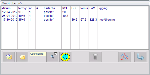 De echomodule (te openen vanuit het Centraal Zwangerschap Menu) is gericht op volledige vastlegging van alle eerstelijns echo’s. Je kunt echobrieven en groeicurves afdrukken of digitaal versturen.